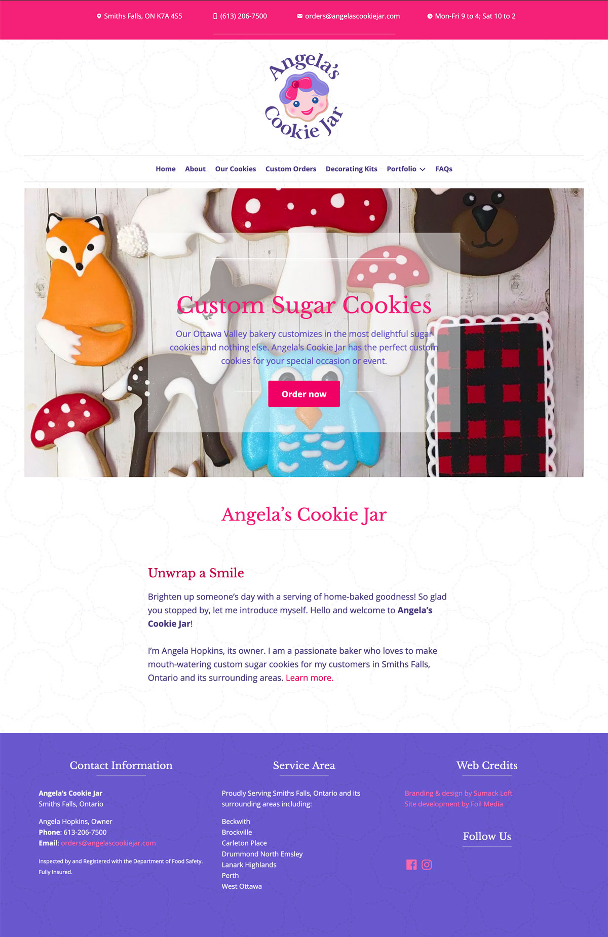 My wonderful web partners and I just finished a quick branding & website development project for a local small business, Angela’s Cookie Jar in Smiths Falls.