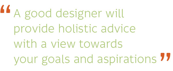 It’s a good idea to have a sense of how a designer looks at your needs. Ideally they are looking at your project from a big picture perspective rather than a one-off job. A seasoned professional will provide holistic advice with a view towards your goals and aspirations.