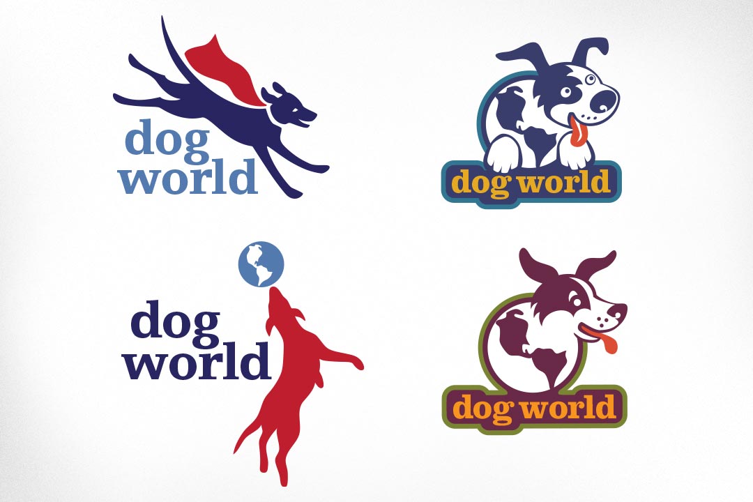 Dog World: A very successful local dog-boarding facility required concepts for a logo design (although ended up choosing something a little less lively). Several animated and boisterous canines were dreamed up to convey a sense of fun and to capture the essence of the kennel’s core services.